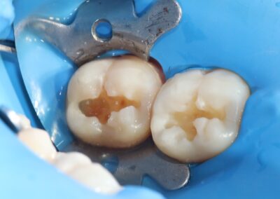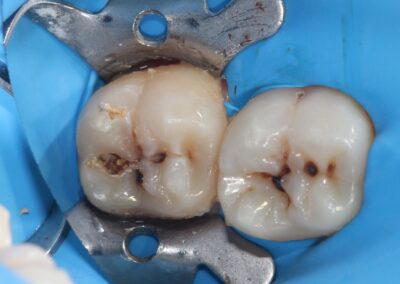 En cuanto a caries, también depende del grado de afección de esta, si ya se está comprometiendo varias paredes del diente, por lo que se ocupara más material para poder restaurar el diente.