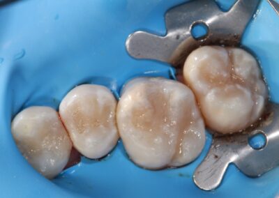 - Se aplica el agente blanqueador (peróxido de hidrogeno al 37.5%) en todas las superficies del diente que son visibles.